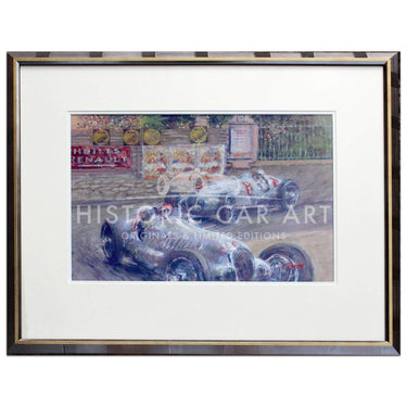 Original Painting. The winning Mercedes-Benz W125 of Manfred von Brauchitsch leads the similar car of Rudolf Caracciola during the 1937 Monaco Grand Prix.