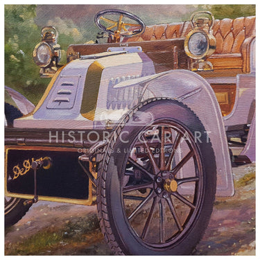 This is one of two De Dion Bouton paintings by Simon Britnell, where he has deviated from his recognised style and subject matter of 1970's iconic cars.