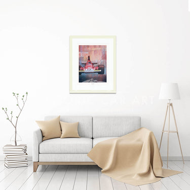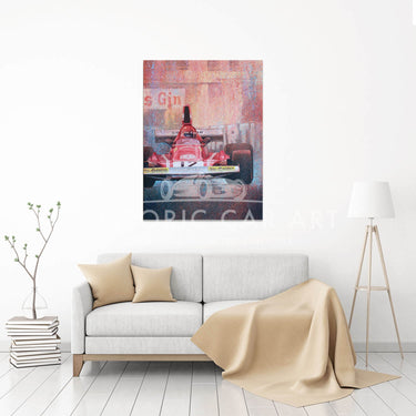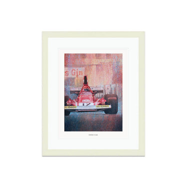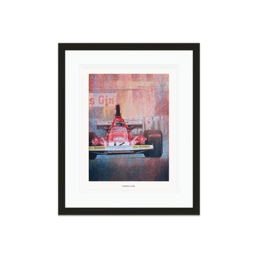 Ferrari 312B3 Formula 1 fine art print. The Ferrari 312B3 was driven by Niki Lauda and Clay Regazzoni for the 1974 Formula 1 season. This striking artwork shows the atmospheric Monaco Grand Prix where Niki Lauda took Pole Position for the 1974 Grand Prix.