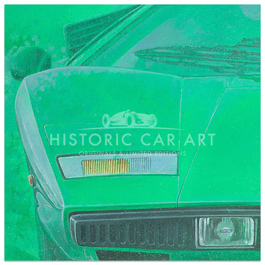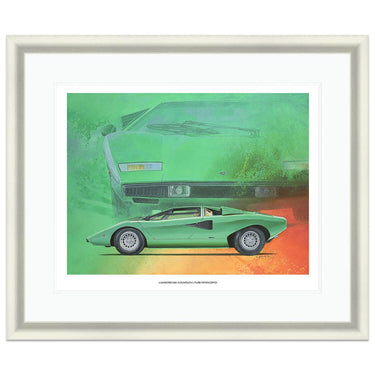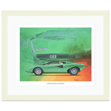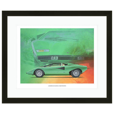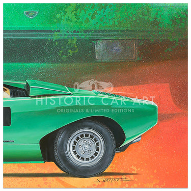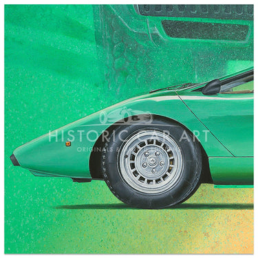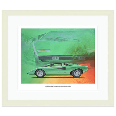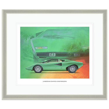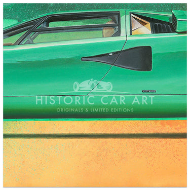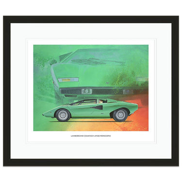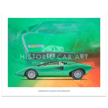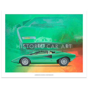 A limited edition print of the 1974 Lamborghini Countach LP400 Periscopio in Verde Medio, by Simon Britnell.