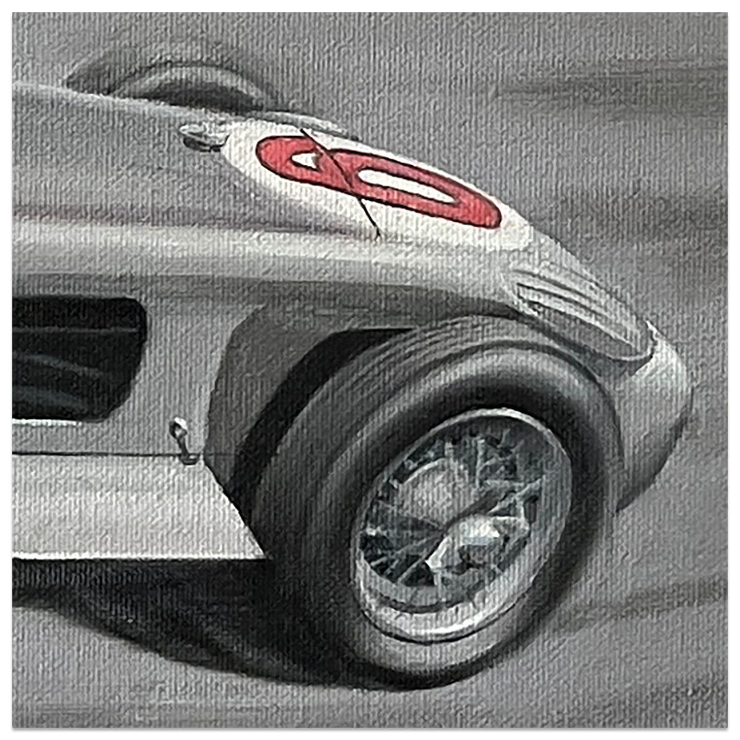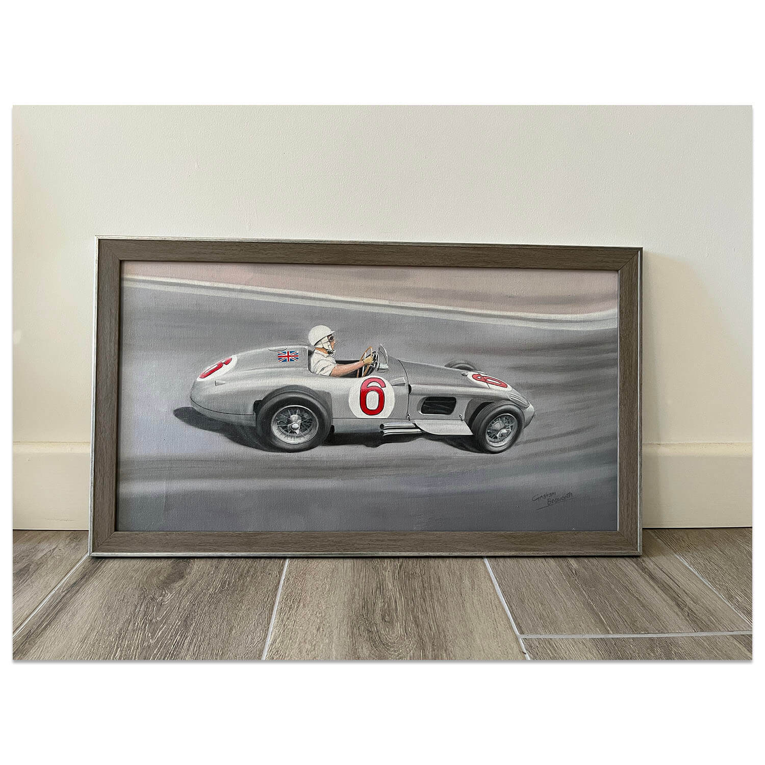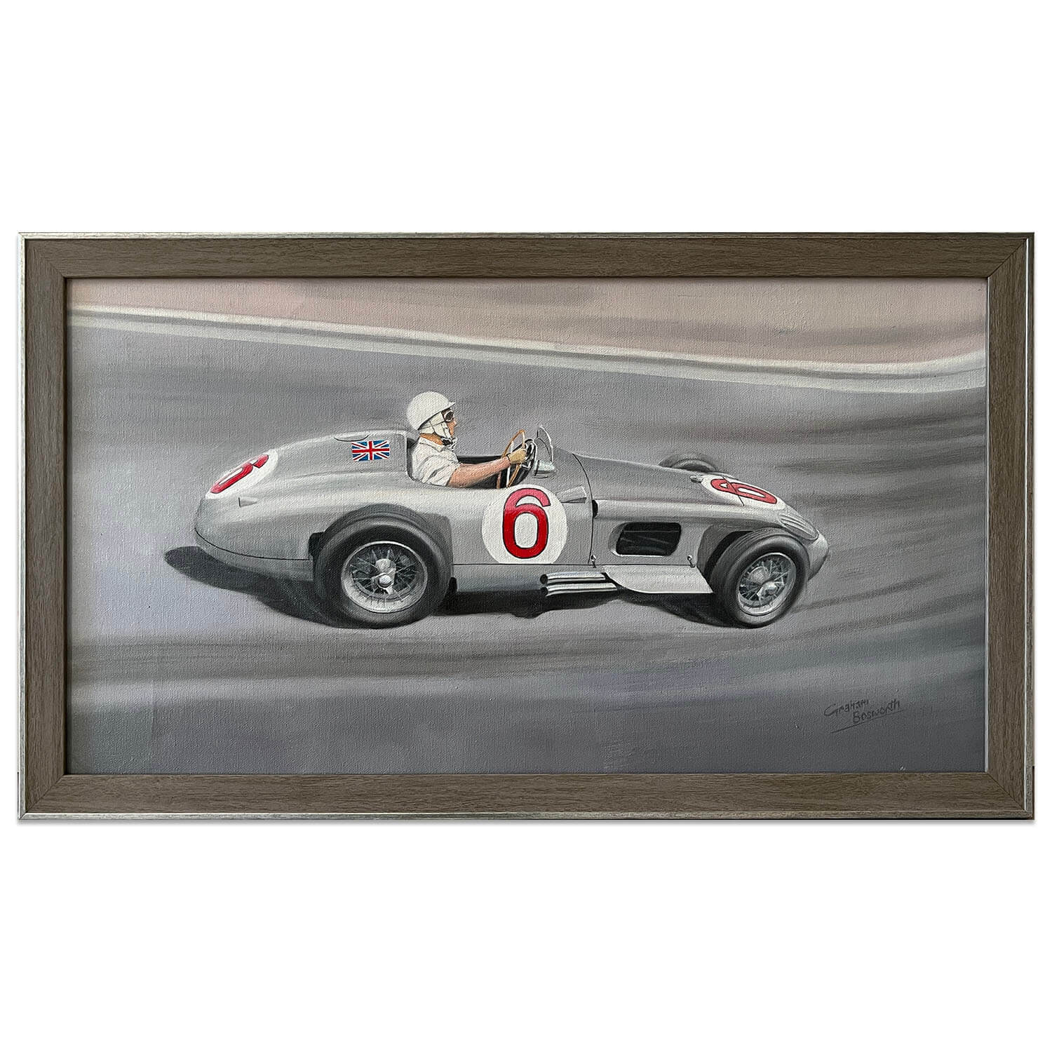 Artist Graham Bosworth grew up in Coventry, the heart of the British motor industry. It was no surprise that his childhood passion for motorsport would later become a favourite subject as he progressed through a professional career as a freelance artist and technical illustrator. “I remember the sight and sound of C and D type Jaguars being driven around the roads near my home”. Early visits to Silverstone also left a lasting impression.