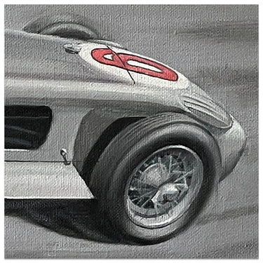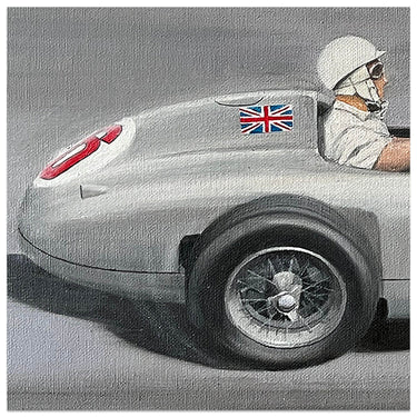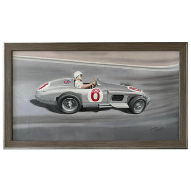 Original Painting. Stirling Moss at the 1955 Monaco Grand Prix, driving the Mercedes Benz W196R.