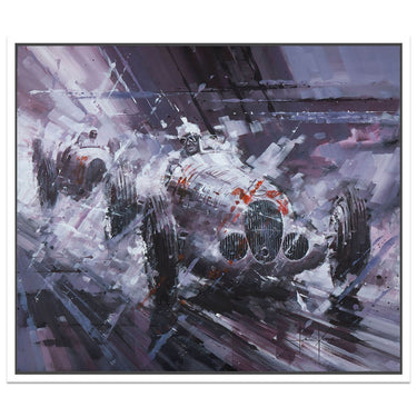 Having begun with photo-realism which Ketchell quickly found frustrating he moved towards his now recognisable impressionistic, semi-abstract style. “I was a fan of the French Impressionists, and thought it would be a good direction to capture speed.” Acrylics suited his new style and his bold captivating paintings were soon in demand: “Jim Clark was my hero and the 1960’s and 30’s are my favourite periods. The shape of the subjects is a key factor and the big sports-prototypes such as the 917, T70 and GT40 have always excited me. The balance of danger against speed of the silver arrows – particularly the Auto Unions – is also part of the appeal.”