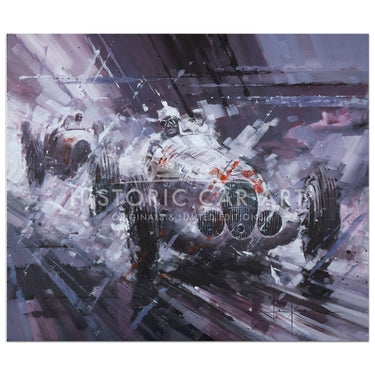 Limited Edition Print. 1937 Swiss Grand Prix. Winner Rudolf Caracciola in his Mercedes W125 leads the Nuvolari / Rosemeyer Auto Union type C