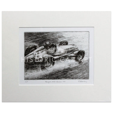 Hand Printed Etching. Juan Manuel Fangio drives his Alfa Romeo 158 (159) to victory in the 1951 seasoning opening Swiss Grand Prix.