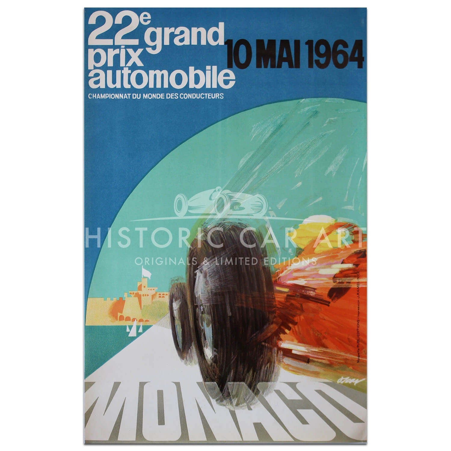 Original vintage poster for the Monaco Grand Prix 1964. Won by Graham Hill for BRM.