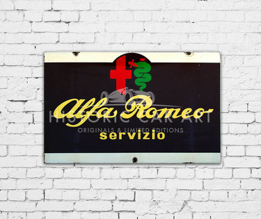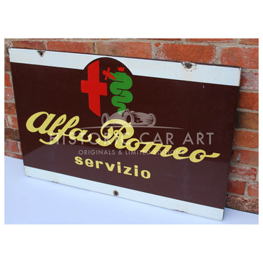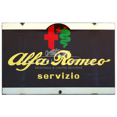 An original Alfa Romeo dealers garage service sign. "Alfa Romeo Servizio"