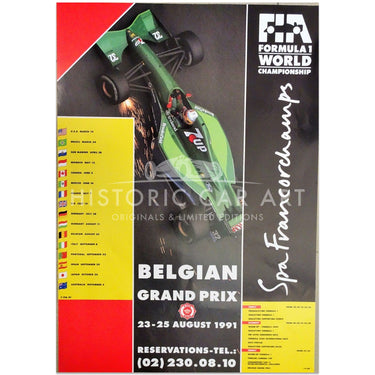 An original poster for the 1991 Belgian Formula 1 Grand Prix at Spa Francorchamps. The race was won by Aryton Senna for McLaren-Honda. This was also Michael Schumacher's debut F1 race.