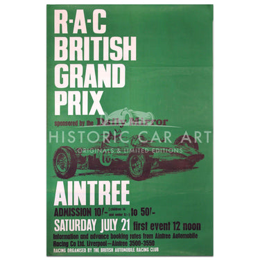 Original vintage poster for the British Grand Prix 1962 held at Aintree