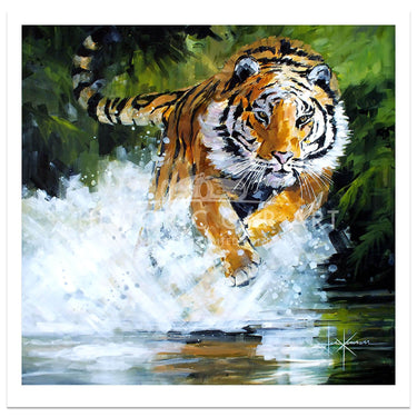 Limited edition print - Contemporary art print of a beautiful tiger on the chase.