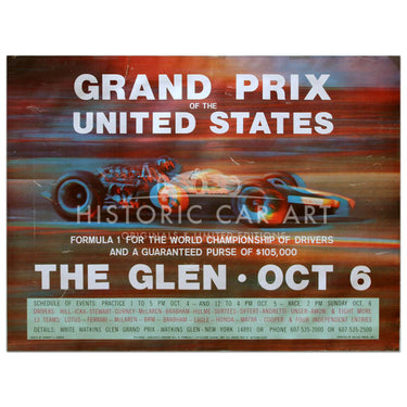 Original vintage poster for the US Grand Prix 1968 featuring Graham Hill and the Lotus 49.
